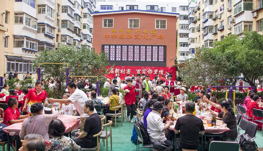 在南市场街道,百家宴连开多场。辽宁省慈善联合总会副会长曹志红与居民同坐长桌,共享200余道家常菜——居民拿手菜与商户招牌菜相间,炸丸子、糖醋鲤鱼等东北佳肴香气交融,现场文艺表演精彩纷呈,大家边品菜边畅谈,在互动中传递“邻聚千家爱”的慈善理念。
