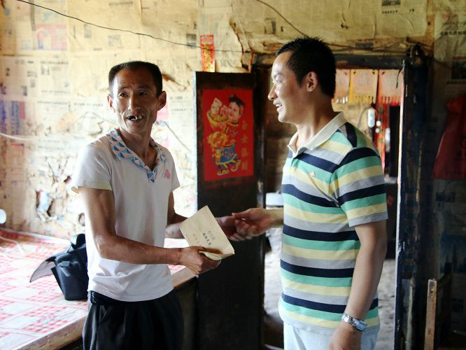 付俊伟(右一)捐建“个人万元慈善基金”救助特困群众