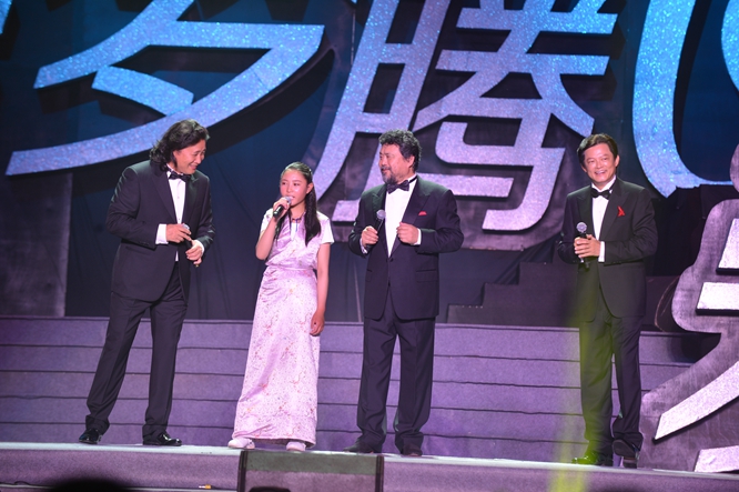 朗萨旺姆与莫华伦、魏松、戴玉强三位歌唱家一起演唱歌曲