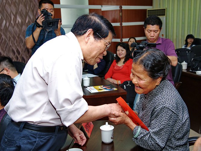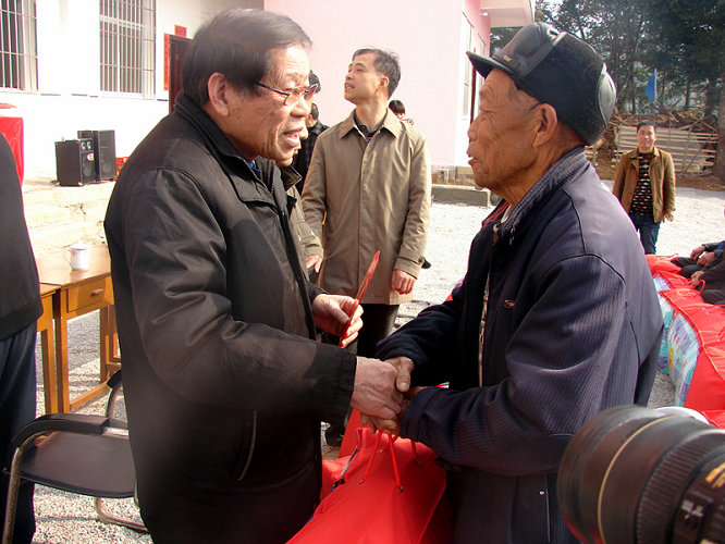 方庆云会长向孤寡老人发放救助金