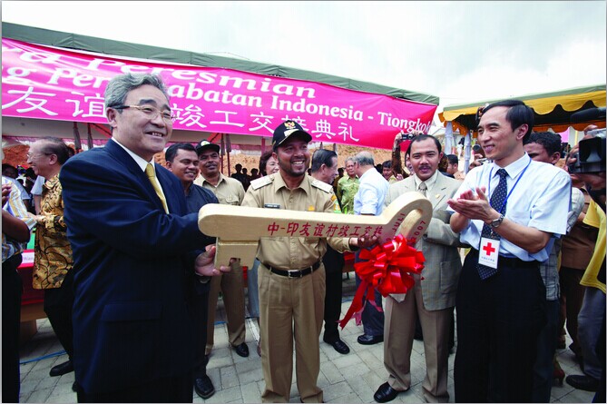 2004年12月26日,印度洋发生大海啸,给东南亚、南亚和非洲许多国家和广大人民带来了空前的灾难。中华慈善总会响应政府号召,动员全国慈善系统开展捐赠活动,共接收捐款2.56亿元。这些捐款为11个海啸受灾国提供了紧急援助,在此后3年的时间里,陆续为印度尼西亚、斯里兰卡、灾后重建中援建了5个友谊村,共修建1000多幢灾民新居和大量公共设施。